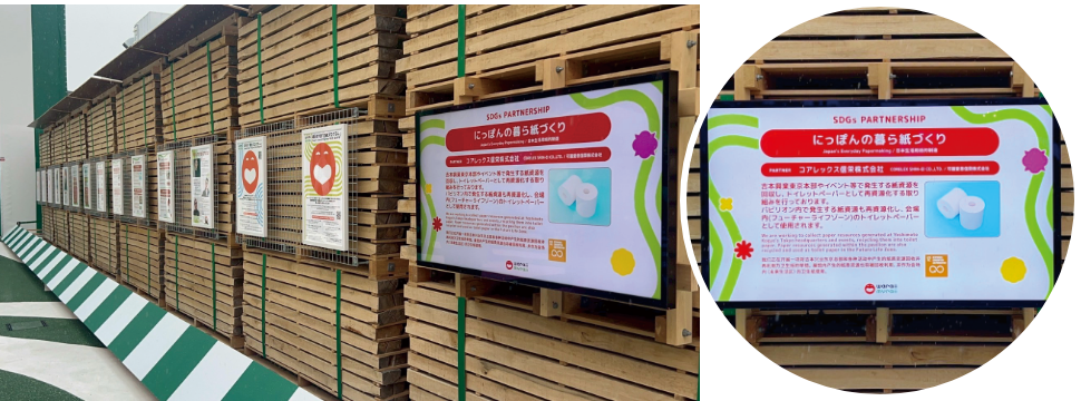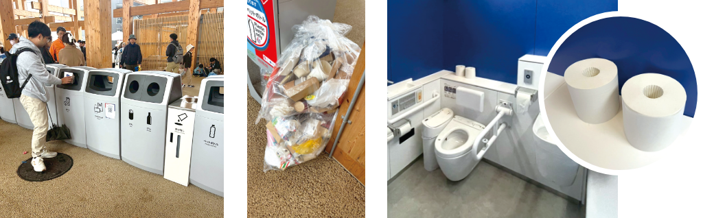 パビリオン内で発生する紙資源、紙コップ、紙皿等を回収し再資源化。